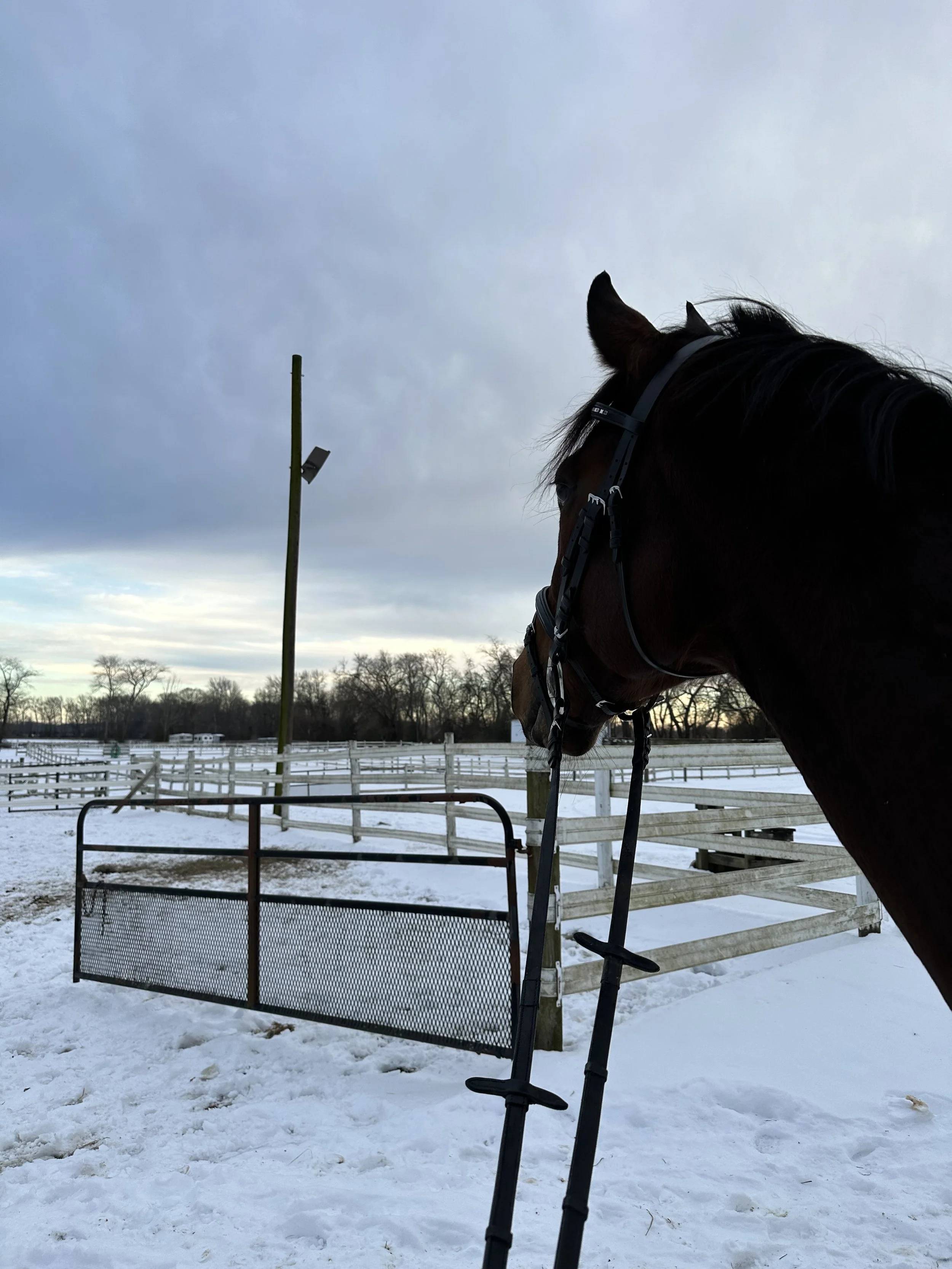 Since Pete has arrived at BtG Equine, we have been bombarded with a winter storm. What that meant for Pete was 10 days of minimal turnout and no real work. We quickly observed that he is a guy who loves a job and thoroughly enjoys being challenged. His ground manners have been really good considering the lack of work! When we were finally able to get him under saddle, we were expecting an exuberant display and readied ourselves for some excitement. We were a little dumbfounded when he stood like a gentleman while Catherine mounted and walked off as if he were an old pro.